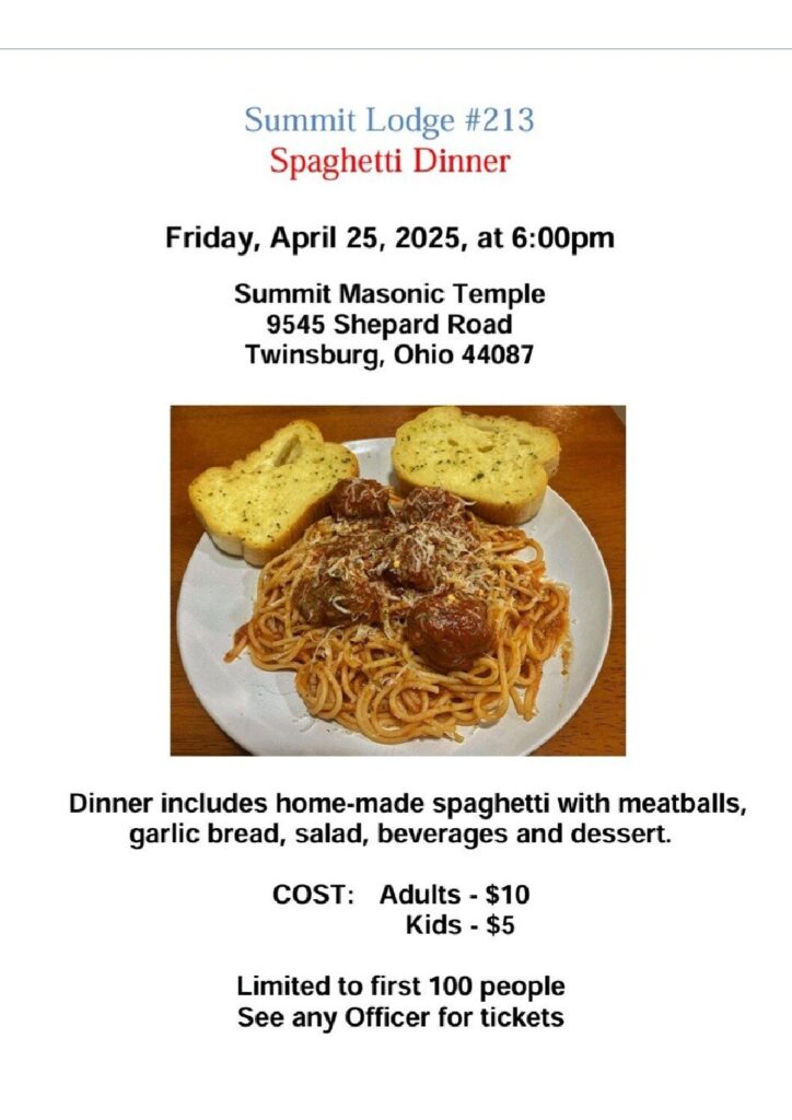 April 25, 2025 – SPAGHETTI DINNER – 6:00pm – See flyer below