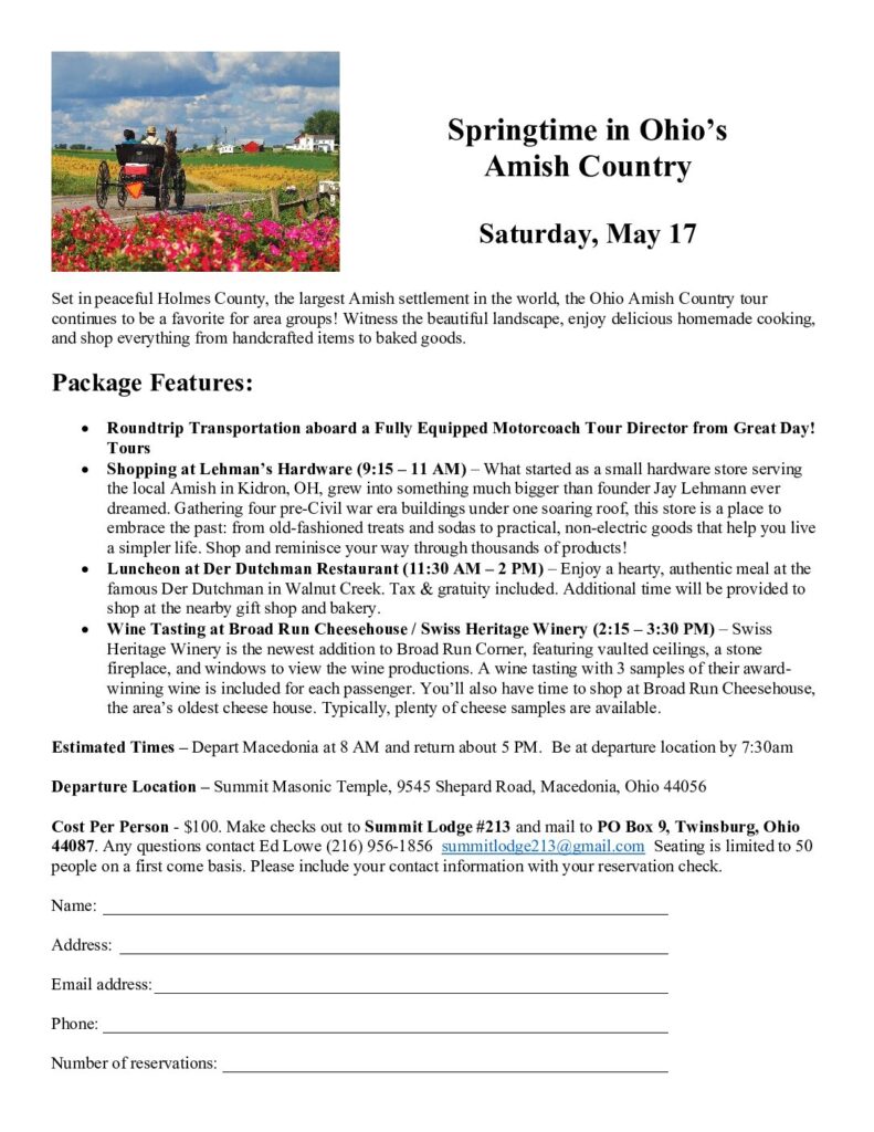 May 17, 2025 Bus Trip to Amish Country – See flyer below