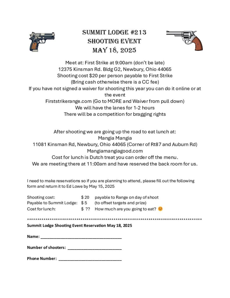 June 19, 2025 – Special Meeting – Lodge Stag Steak Cookout – HAVE A GREAT SUMMER BRETHREN